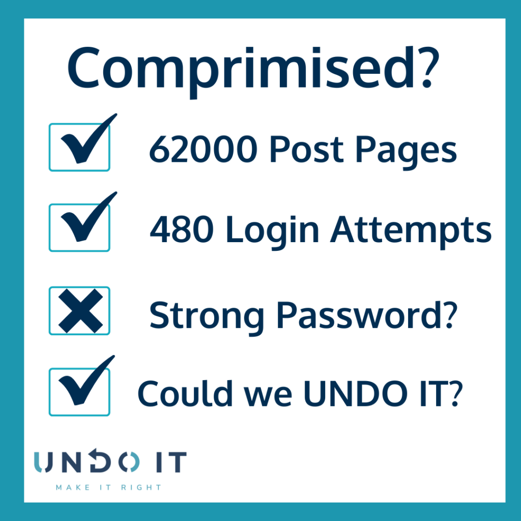 Now we have understood how the site was compromised (the site username was “admin” and the password included the site name) we could start the mitigation process, before the compromised material was removed from the site we needed to block the access to the site from the people writing the blog posts.